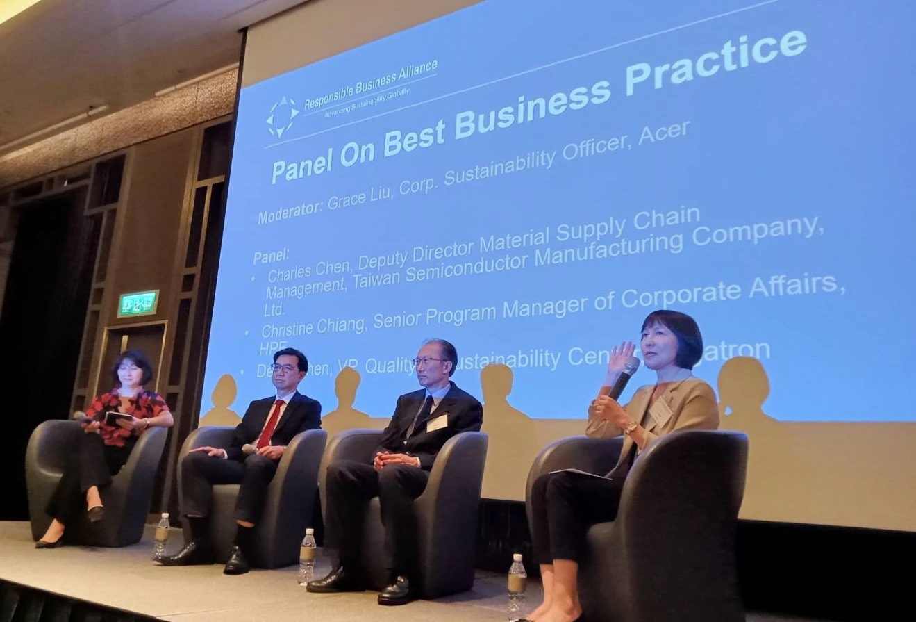 宏碁公司受責任商業聯盟(RBA)邀請,日前舉行的RBA推廣會議中組織一場最佳商業實踐的專題討論,由宏碁永續長劉靜靜主持,與來自台積電、慧與科技、和碩等國際公司的專家共同分享在各產業中對於社會與環境挑戰的各種最佳實踐與作法,也同步討論在供應鏈中的機會。