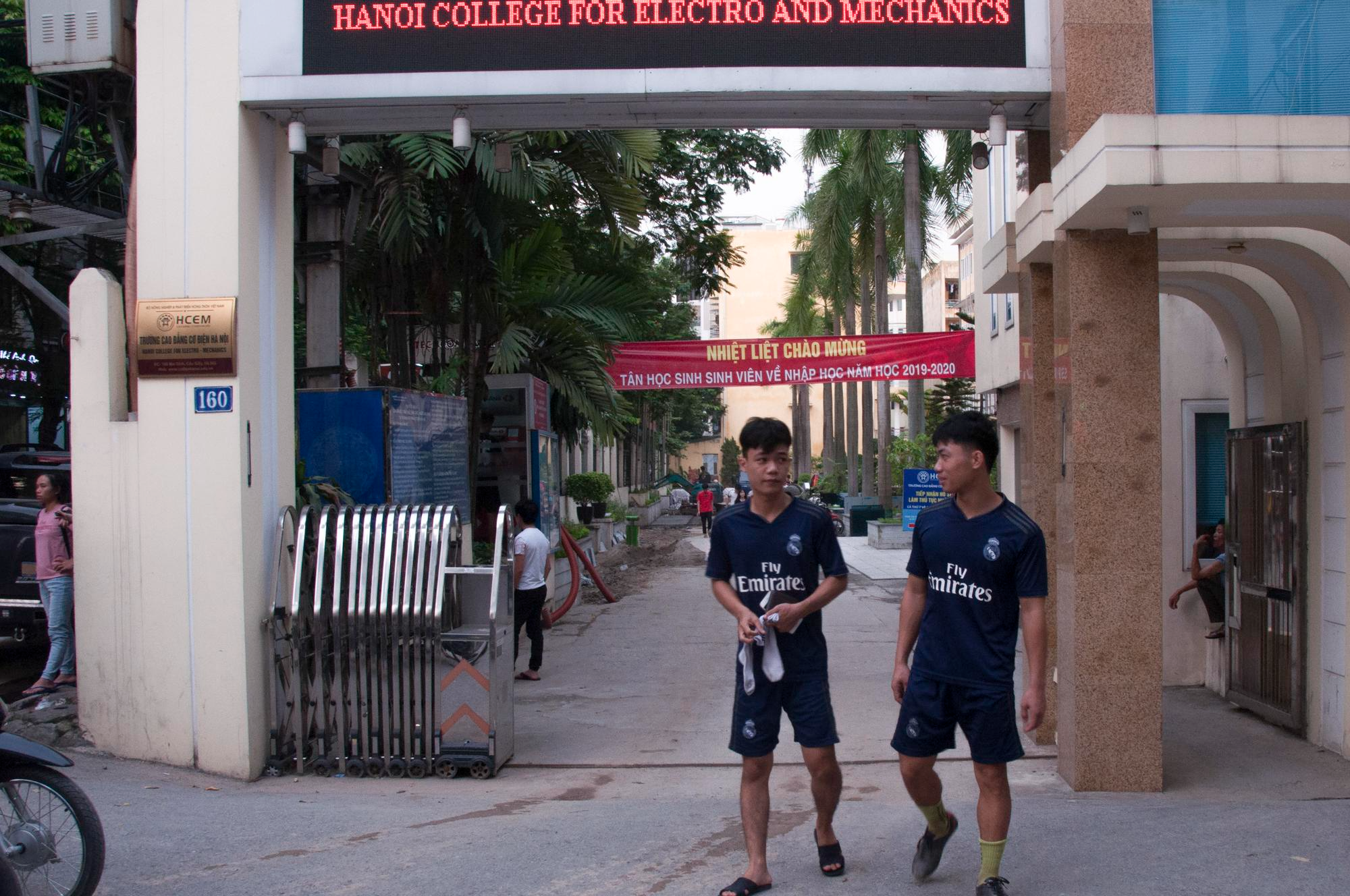 直到傍晚5點45分的晚餐時間,寂靜被打破了。數千名年輕男女走出訓練中心的大門,其中許多人都穿同款的藍白polo衫上衣,上頭印著越南與日本的國旗。在這條越南最著名的「勞務街」上,短短不到600公尺的街道聚集上百家「勞務輸出公司」──也就是人力仲介──他們負責招募、訓練越南的年輕人,輸出到日本、韓國、台灣等地做工。