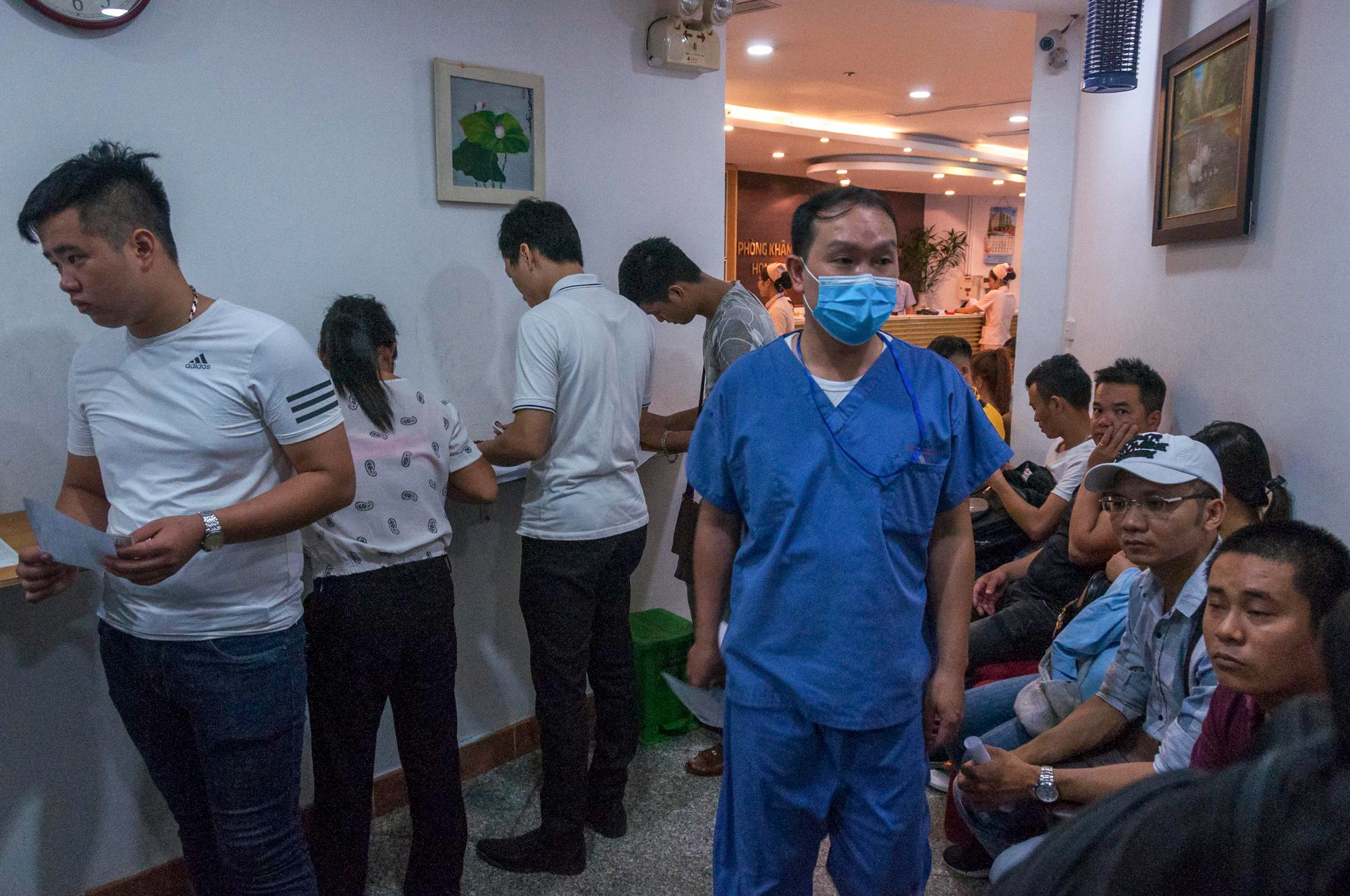 河內一間專做越南勞工來台工作的體檢醫院,平日上午擠滿等候檢查的工人。(攝影/簡永達)