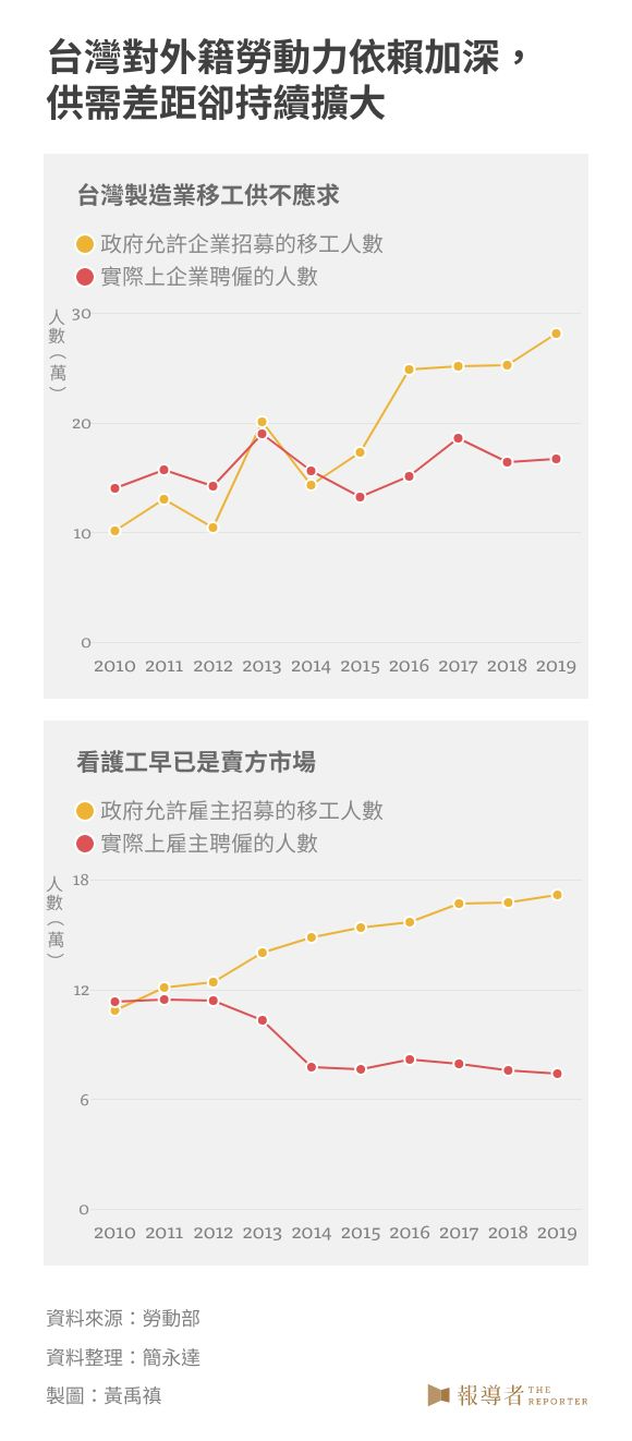這是經濟學的基本邏輯,當外籍勞動力市場供不應求,越南勞工能夠從而獲得市場上的好處。勞動部也同意這項說法,過去20年來,「我們對外籍移工的依賴是持續增加的,可是國際上引進移工的國家也在增加,⋯⋯所以變成你(雇主)引進的成本勢必也會提高,」薛鑑忠說。