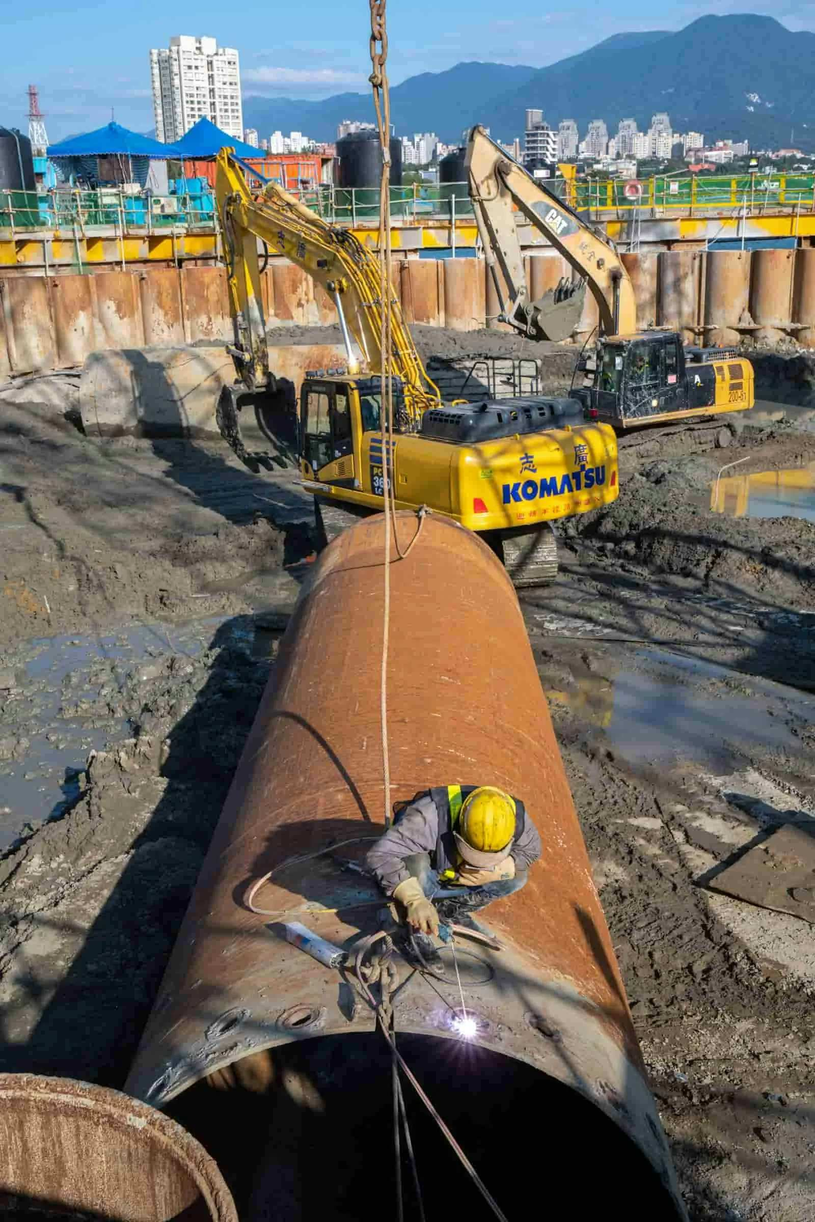 公共工程在戶外施作,要日曬雨淋,不如蓋廠辦舒服,移工愈來愈難找。圖為淡江大橋工程。(謝佩穎攝)