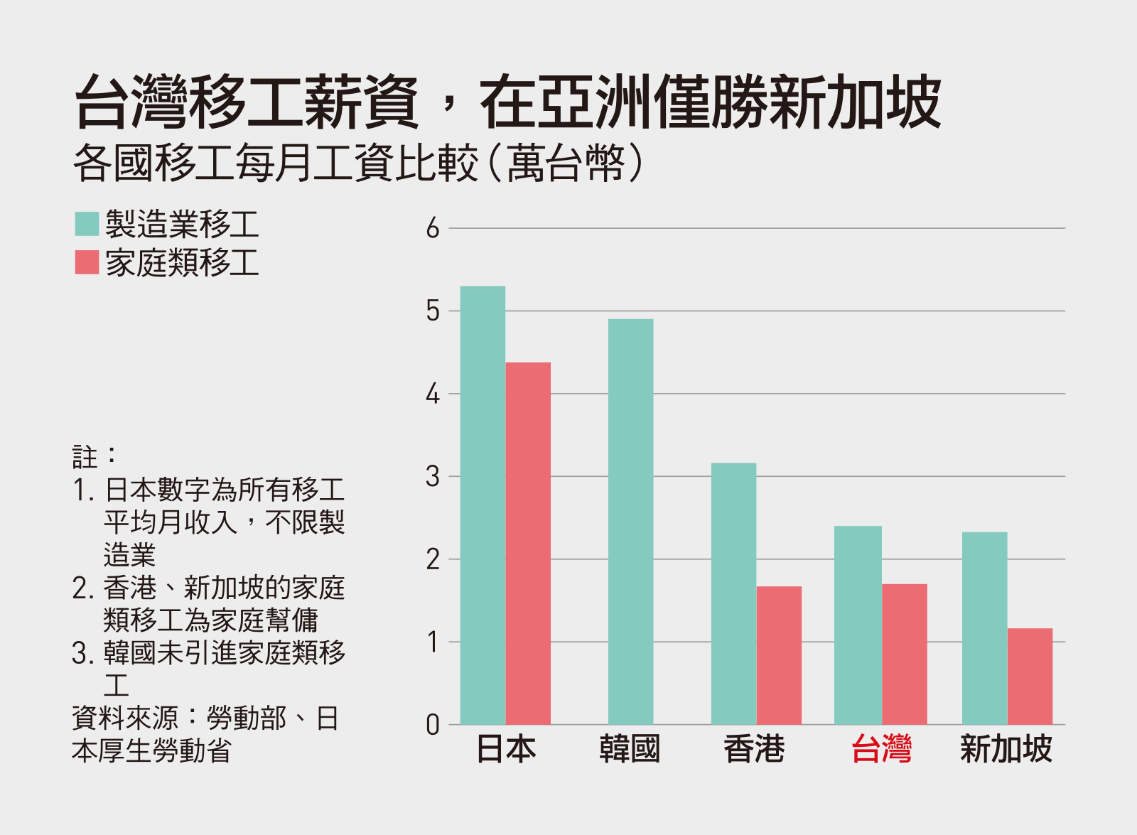 由於日、韓給移工的工資高於台灣,且日本強調同工同酬,加速台灣在移工市場被邊緣化。