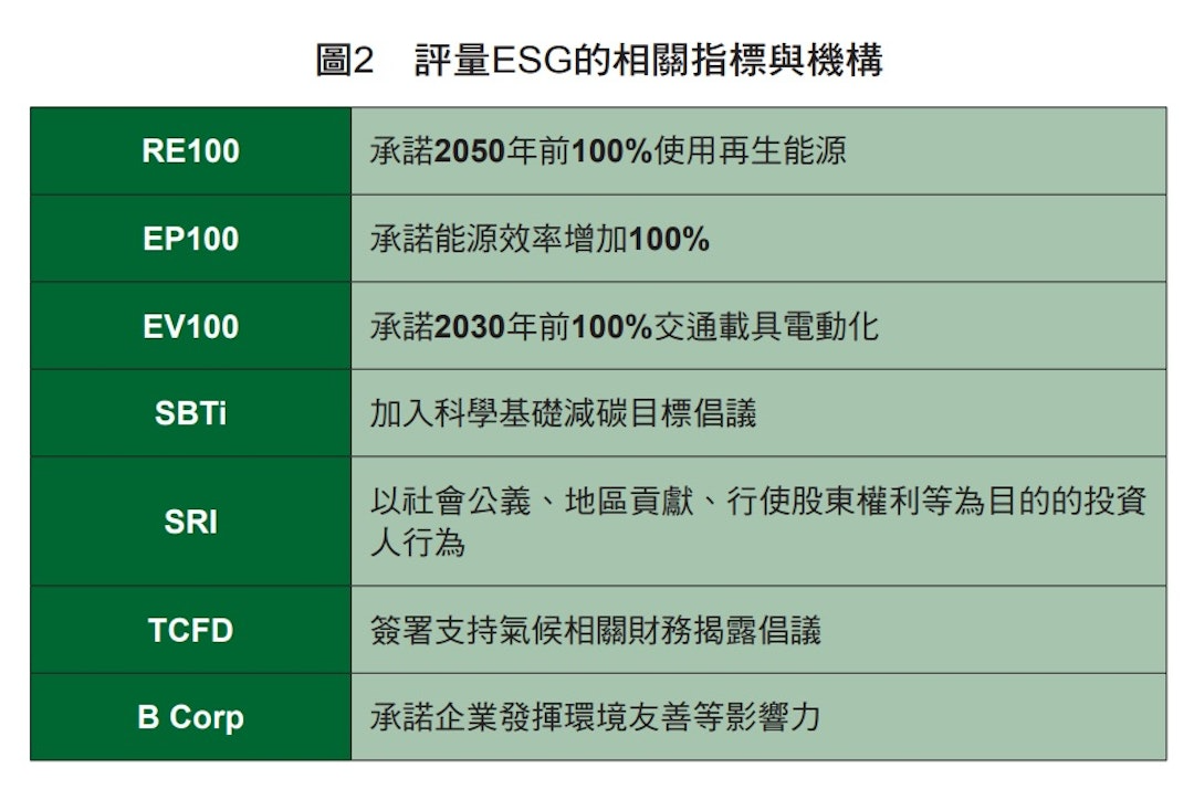 在環境永續的評量,也產生了很多新的指標及認證機構,如RE100、EP100、EV100、SBTi、TCFD及B Corp等,企業及消費者都必須瞭解,未來這些指標也可能成為認證品牌,並為品牌ESG背書的標籤,成為品牌信賴資產的一部分。