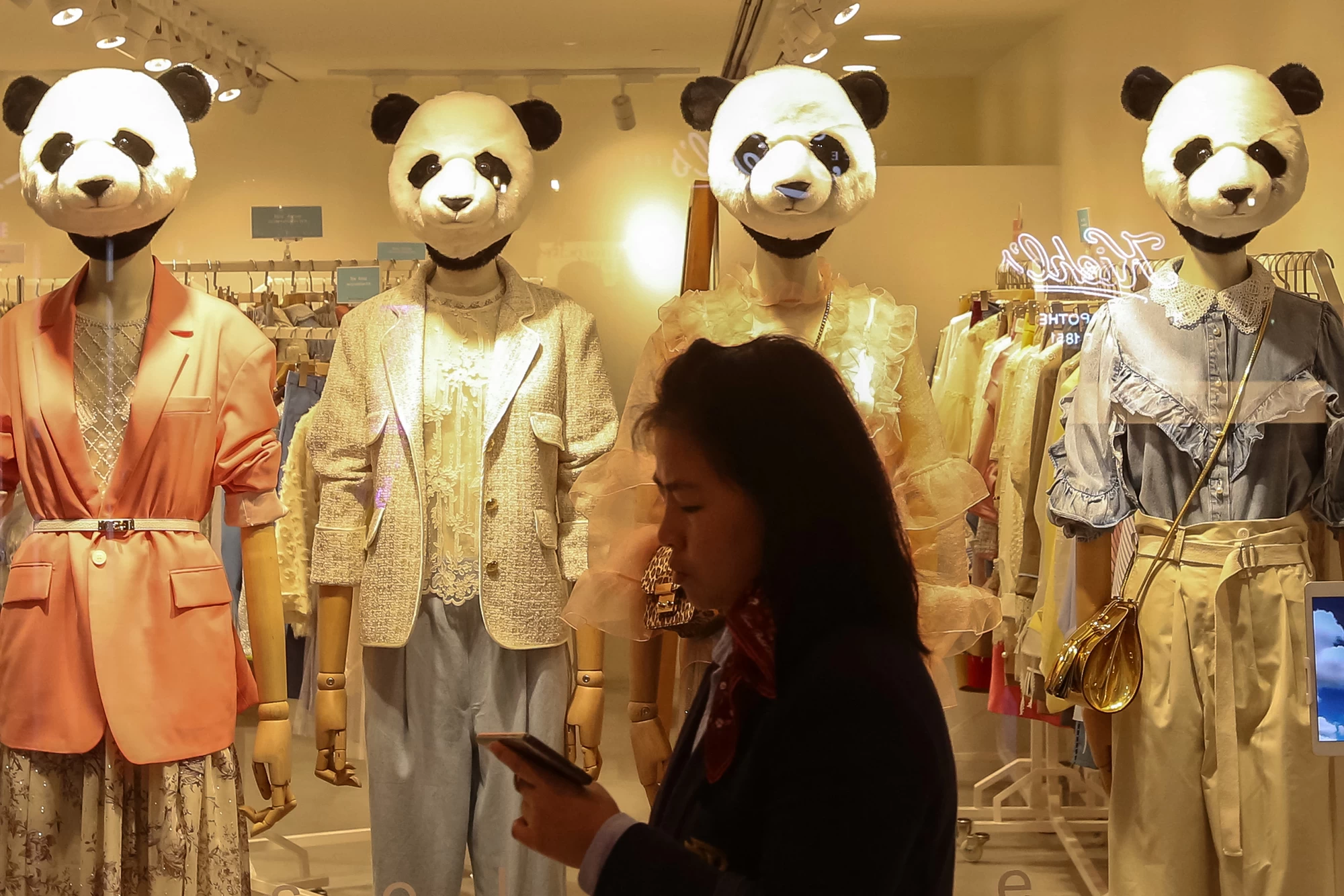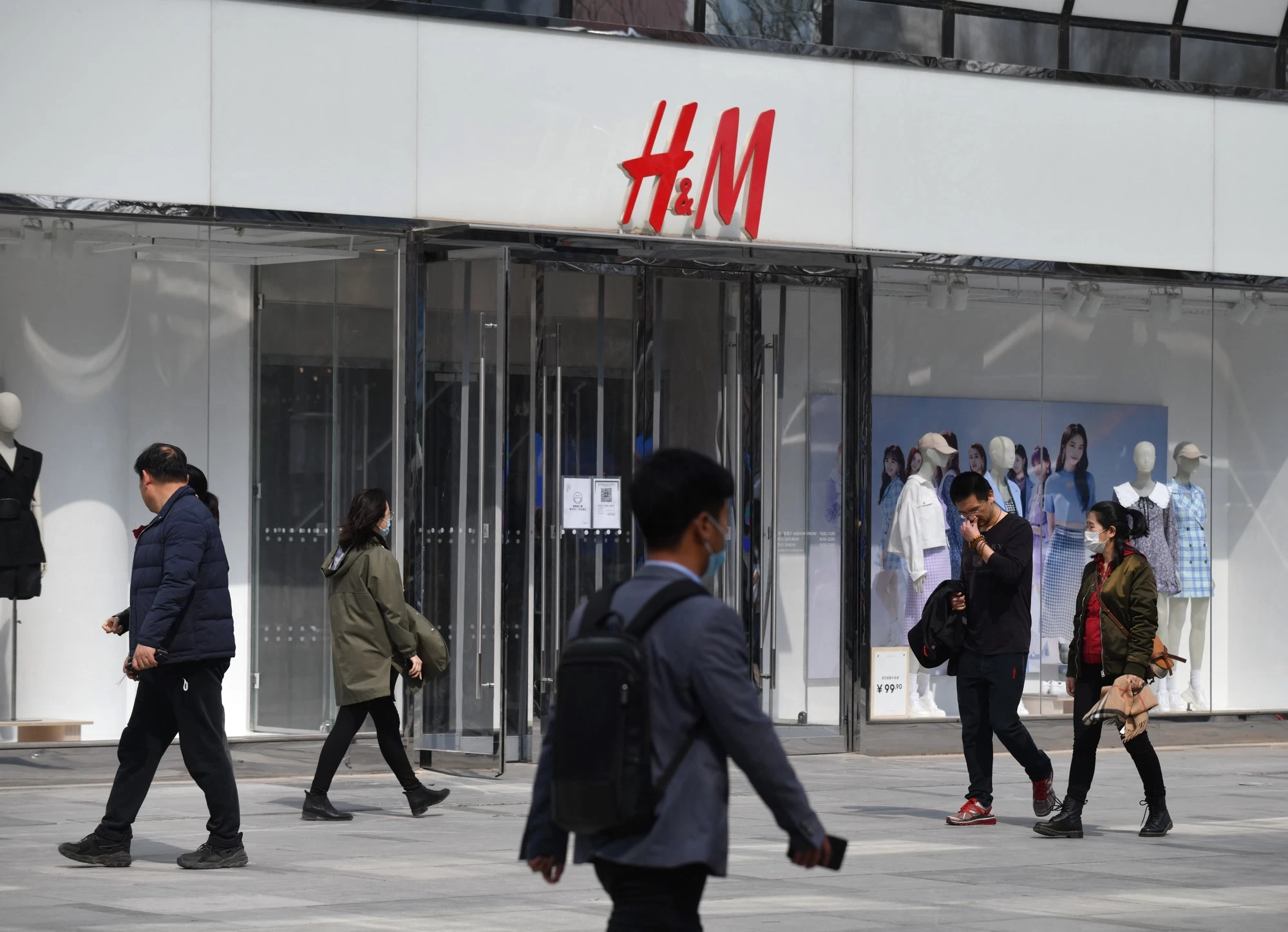 2021年3月,瑞典時裝公司H&M因過去曾發表聲明關切新疆的強迫勞動與歧視問題,而遭到中國民眾聲討抵制。圖為北京一間H&M因受抵制暫時停業。(攝影/AFP/GREG BAKER)