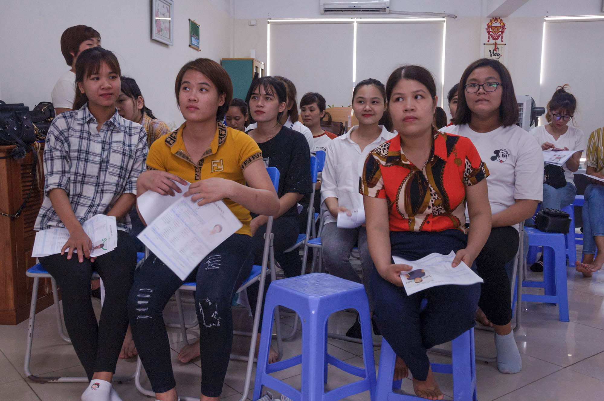 越南移工赴日本工作之前,必須通過語言與技能檢定。圖為一所越南仲介開設的日語訓練中心。